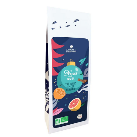 Thé Vert Epices & Agrumes Bio - La Route des Comptoirs Lumières de Noël 100g vous plongera dans l’esprit de Noël en vous rappelant les notes d’agrumes et d’épices qui parfument harmonieusement ce thé vert. Sachet 100g